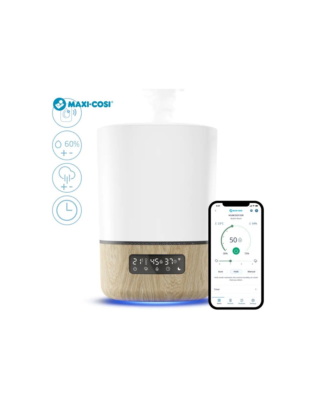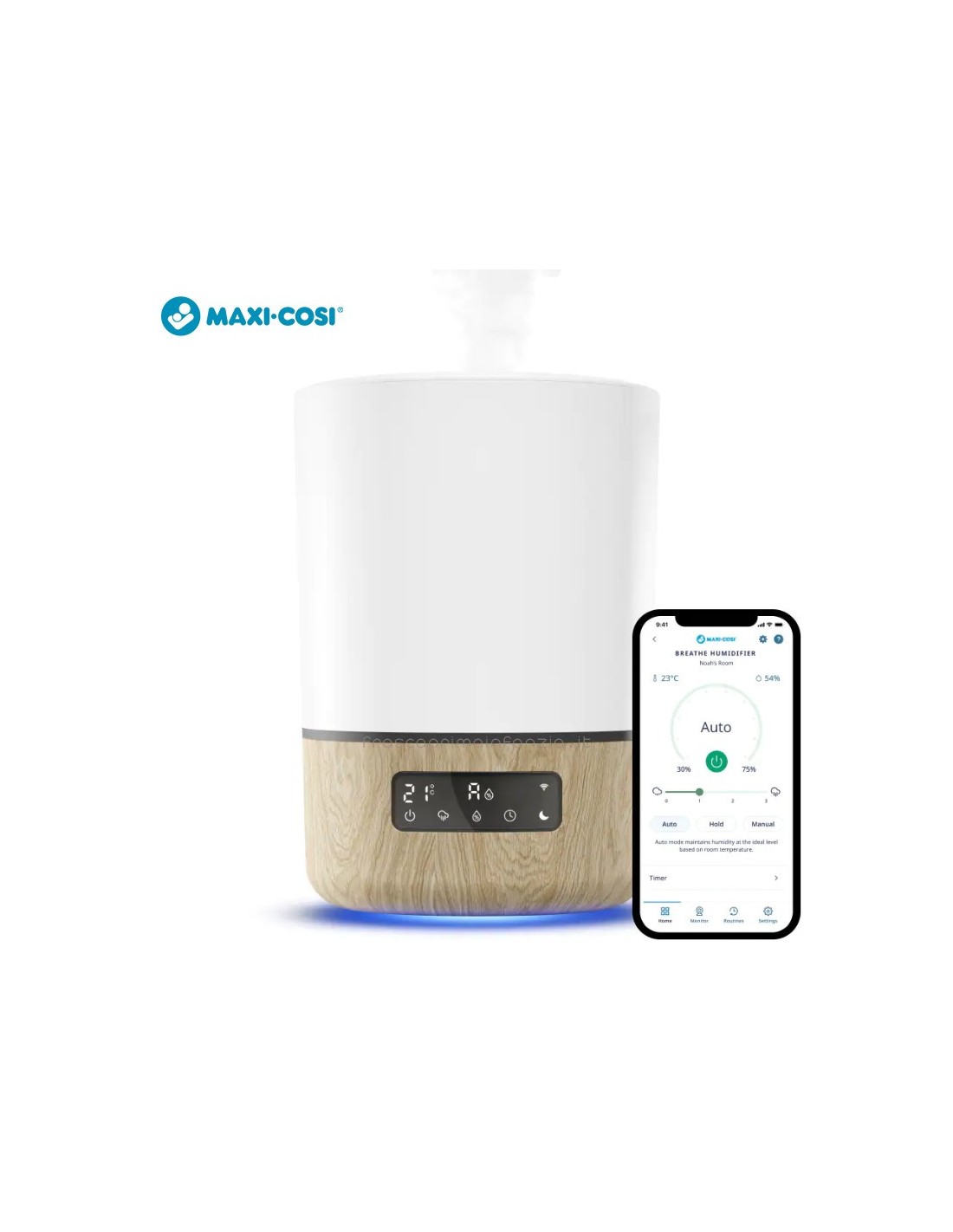 L'umidificatore Breathe assicura che l'umidità della tua nursery sia sempre perfetta affinché il tuo bambino abbia un sonno rilassante. Puoi accenderlo da qualsiasi luogo tramite l'app Maxi-Cosi Connected Home, per preparare la nursery prima dell'ora della nanna. Una serie di sensori intelligenti consentono all'umidificatore Breathe di funzionare in modalità completamente automatica oppure, se preferisci, puoi regolare l'umidità, i livelli di nebulizzazione e i timer. L'umidificatore Breathe può essere utilizzato anche come diffusore di oli essenziali, per un sonnellino profumato e rilassante.