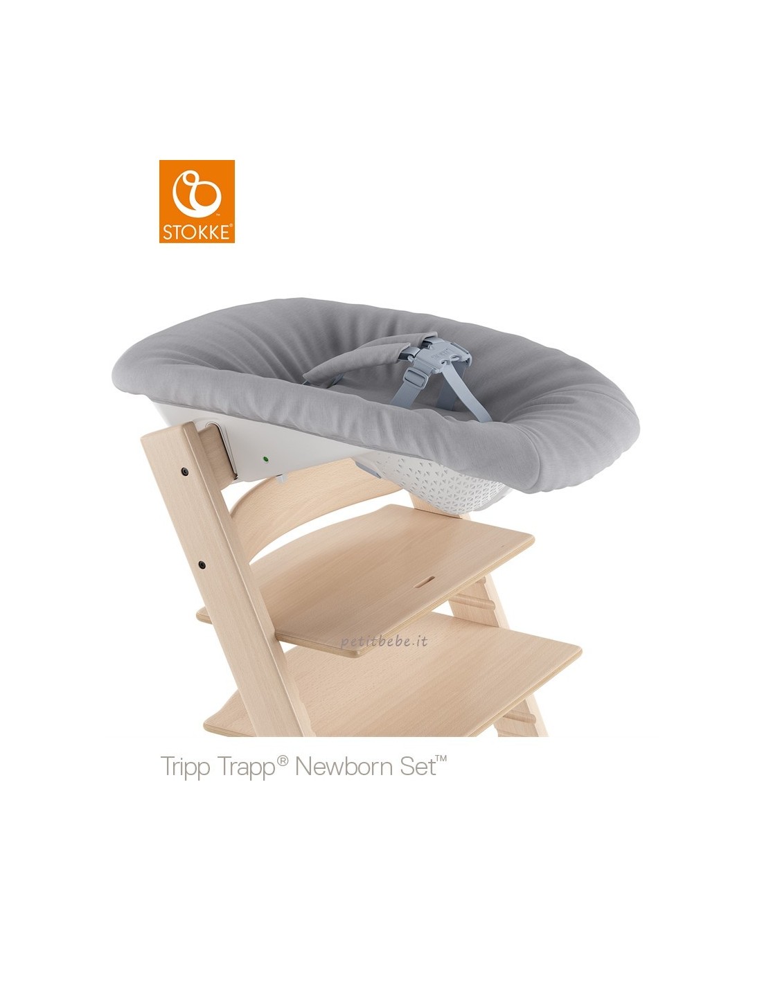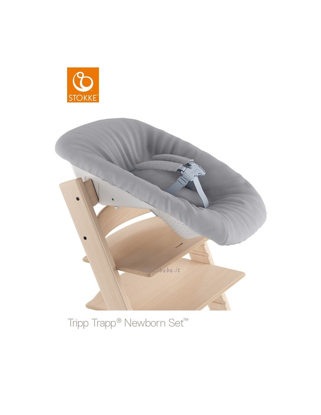 Il Newborn Set di Stokke per Tripp Trapp è la sdraietta  comoda ed ergonomica che solleva il tuo bambino all'altezza del tavolo.