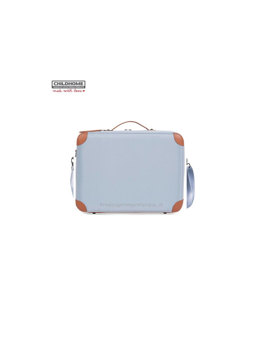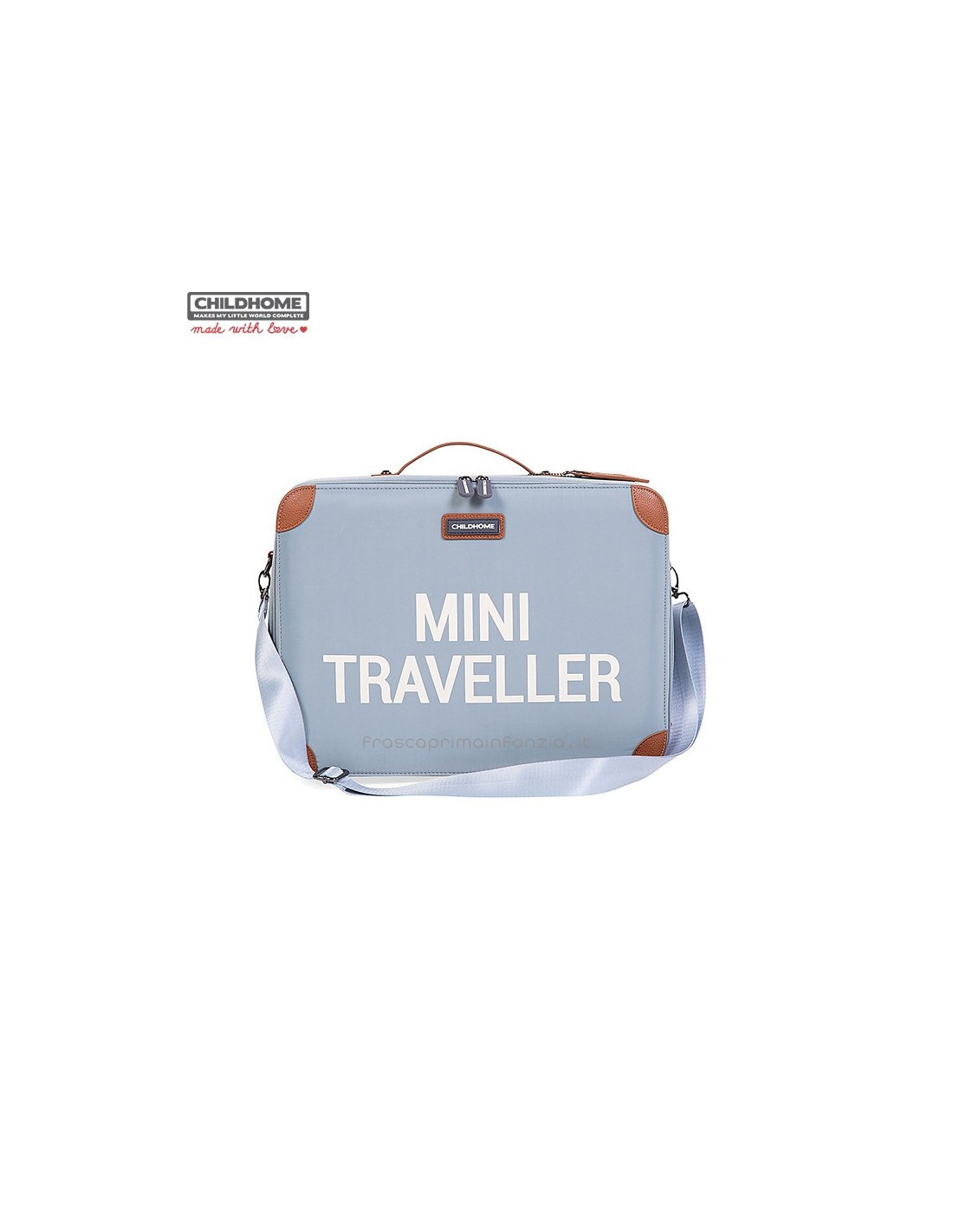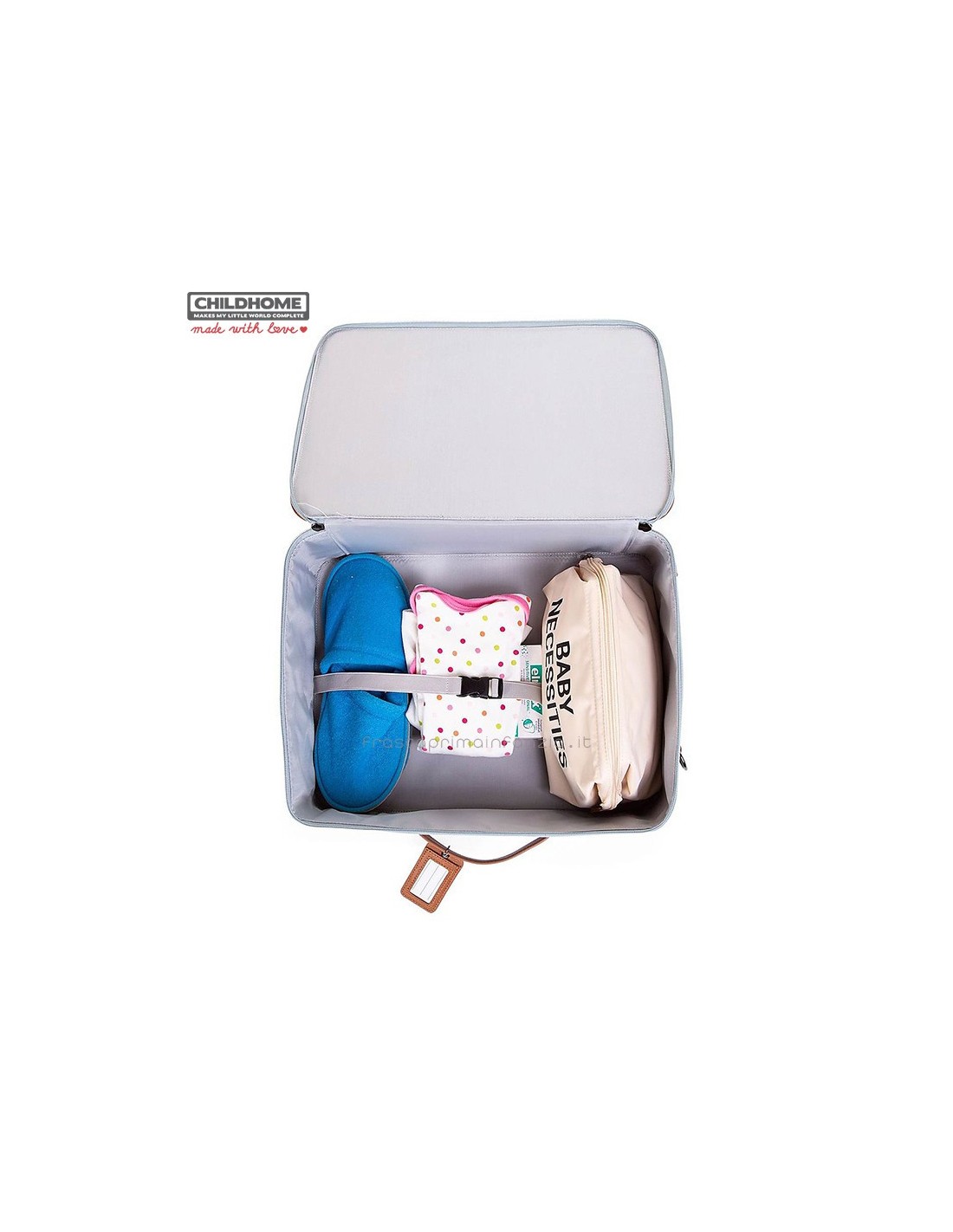 Mini Traveller , del marchio belga Childhome è un bagaglio a misura di bambini (40x30x15 cm), perfetto per trascorrere una notte dai nonni o dagli amichetti ma anche per andare in vacanza con mamma e papà! Questa bellissima valigetta da viaggio con chiusura a zip è curatissima nei dettagli e di una sobria eleganza dal gusto tutto comtemporaneo.Ha un' ampio scompartimento interno perfetto per contenere vestitini, giocattoli e tutti gli accessori indispensabili per i piccoli viaggiatori. L' elastico interno aiuta a tenere tutto in ordine! Ha un pratico manico e una tracolla per trasportarla facilmente, e grazie all' etichetta per il nome non andrà mai persa!