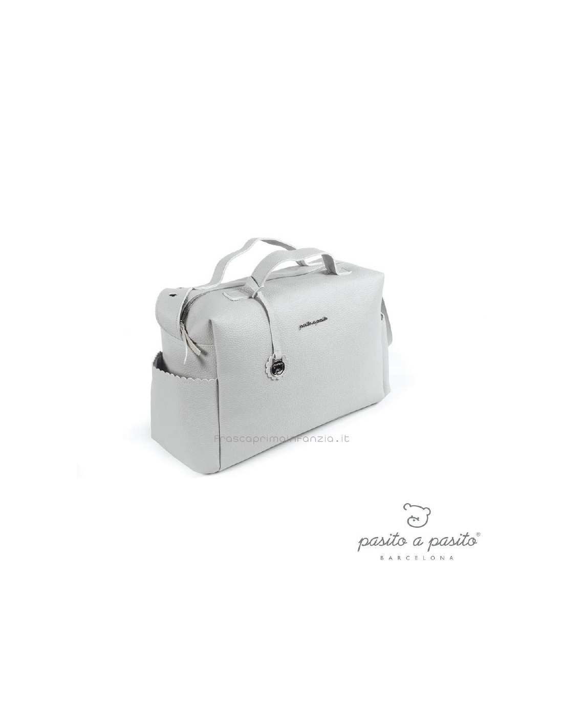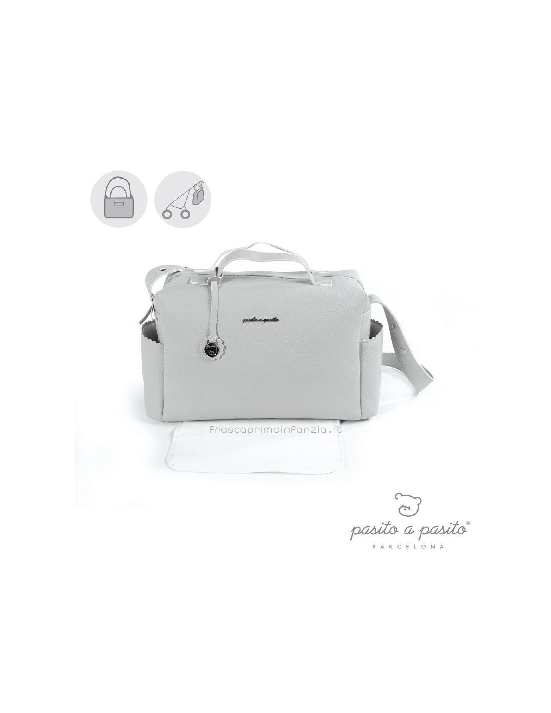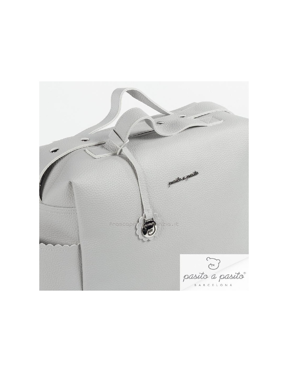Borsa Fasciatoio della collezione Biscuit Pasito a Pasito. Questa grande borsa per la maternità è realizzata in similpelle e ha diverse tasche e divisori, ideali per riporre tutto ciò che serve per la storia del bambino lontano da casa. Pratico ed elegante, include due manici e una lunga maniglia con staffe da portare a spalla o nella carrozzina del bambino. Include fasciatoio per il cambio.