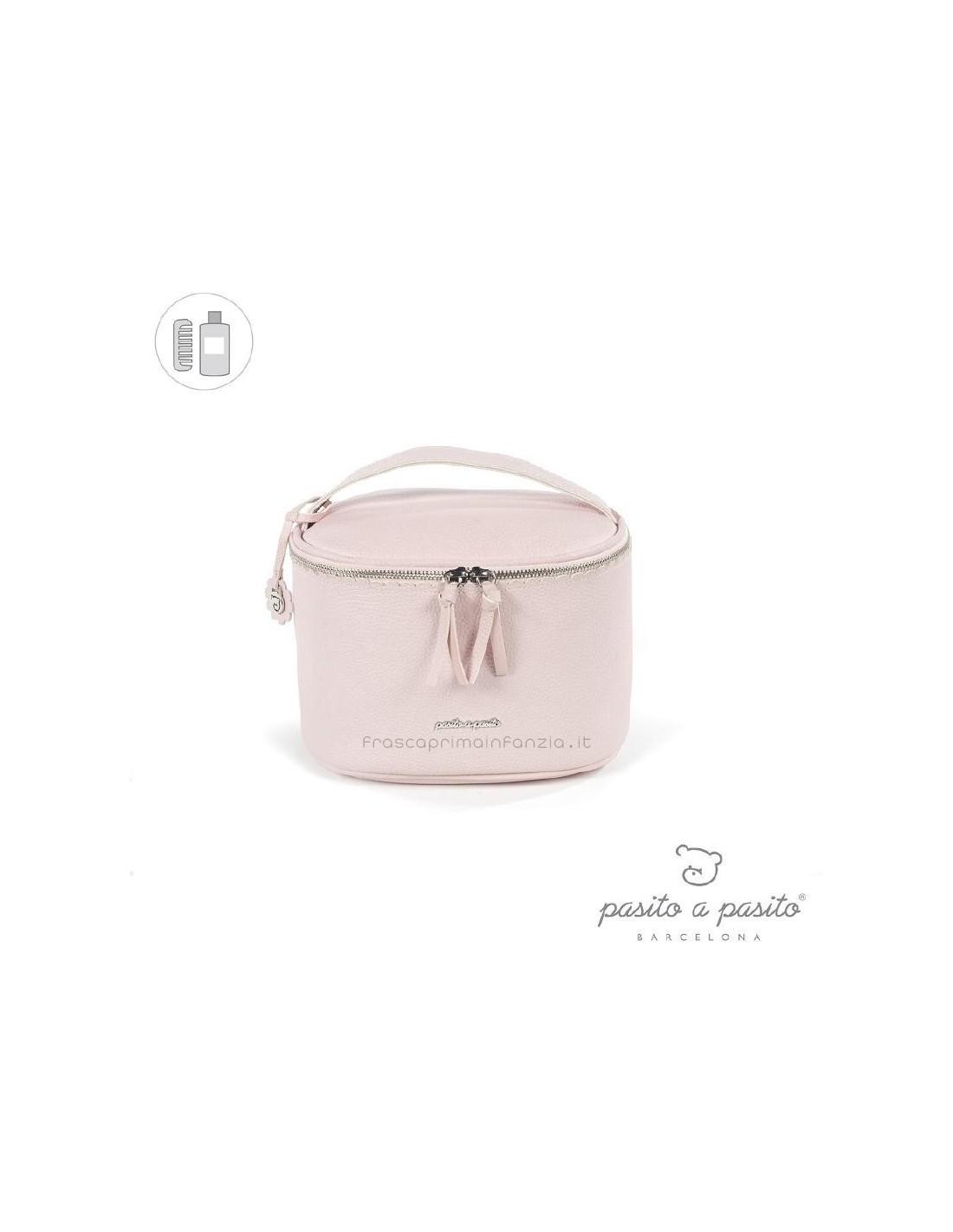 Ampio beauty per i prodotti per il bambino della collezione Biscuit di Pasito a Pasito.Realizzato in similpelle, ha una grande dimensione, ideale per trasportare tutti i prodotti del bebè nelle loro uscite e gite.Include maniglia integrata nella parte superiore e maniglia per un facile trasporto.