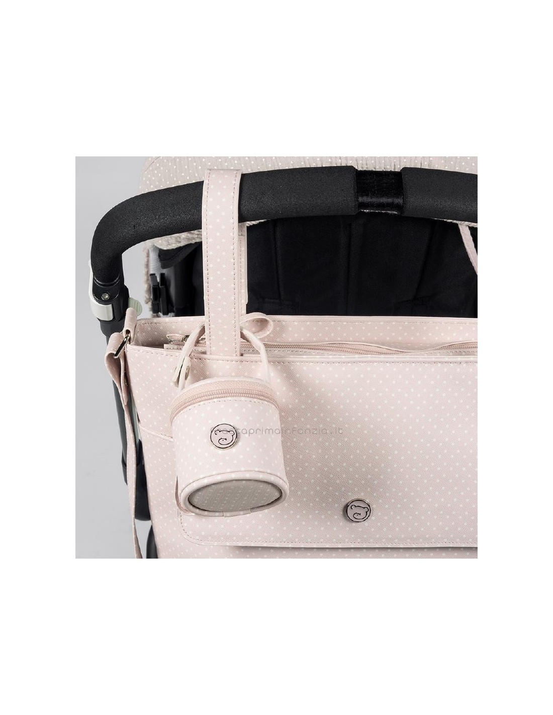 Grazie alla sua maniglia con chiusura puoi agganciarlo alla borsa, al passeggino o alla sedia.