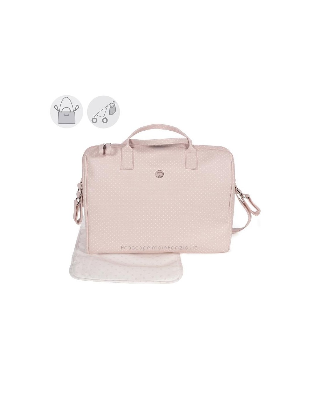 La borsa faciatoio, molto pratica e spaziosa per portare tutto quanto serve al tuo bambino, è facile da agganciare al passeggino.