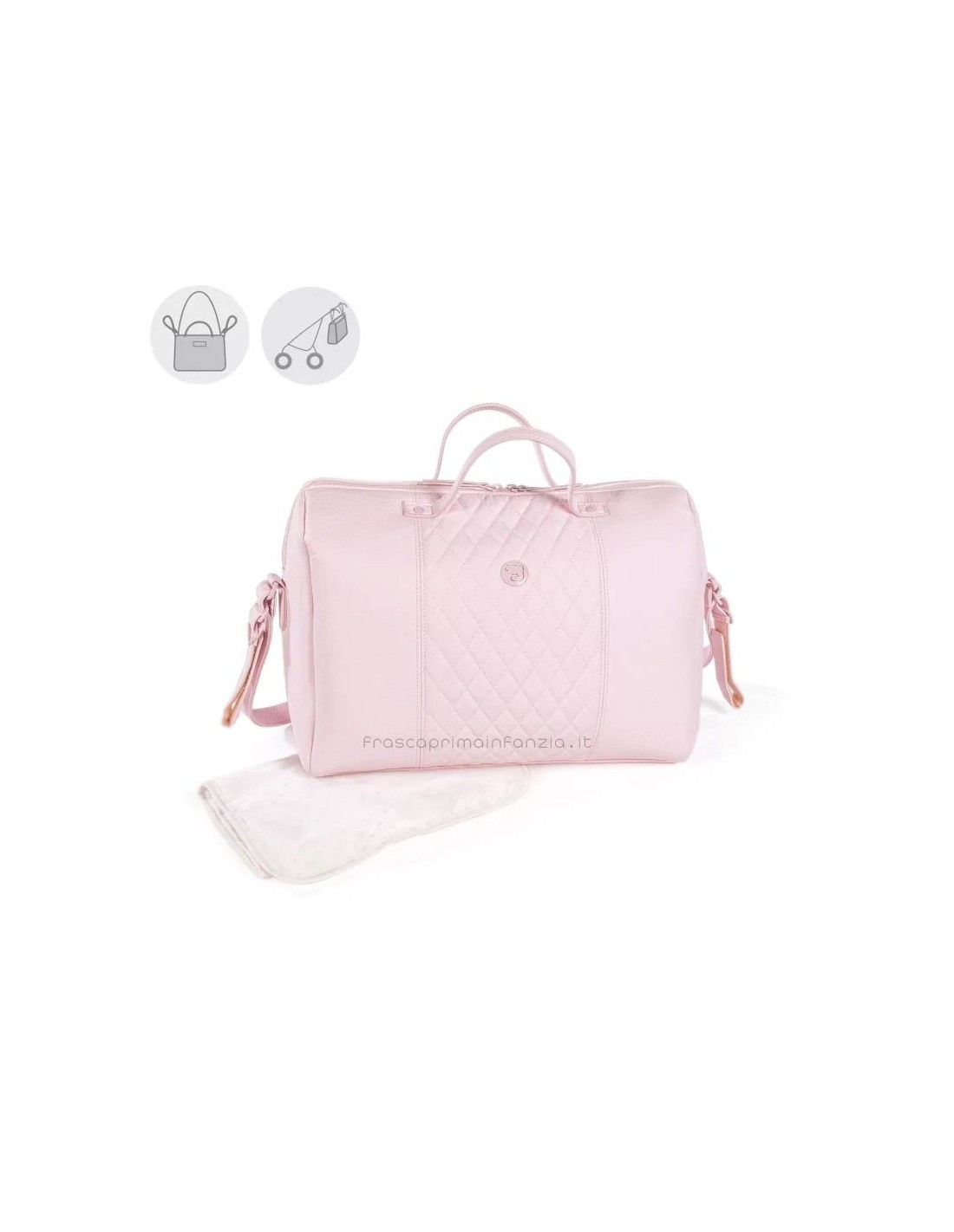 La borsa faciatoio, molto pratica e spaziosa per portare tutto quanto serve al tuo bambino, è facile da agganciare al passeggino.