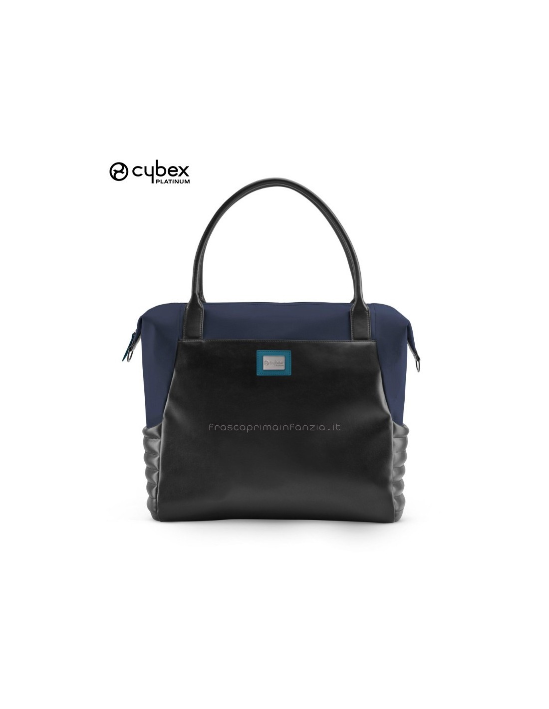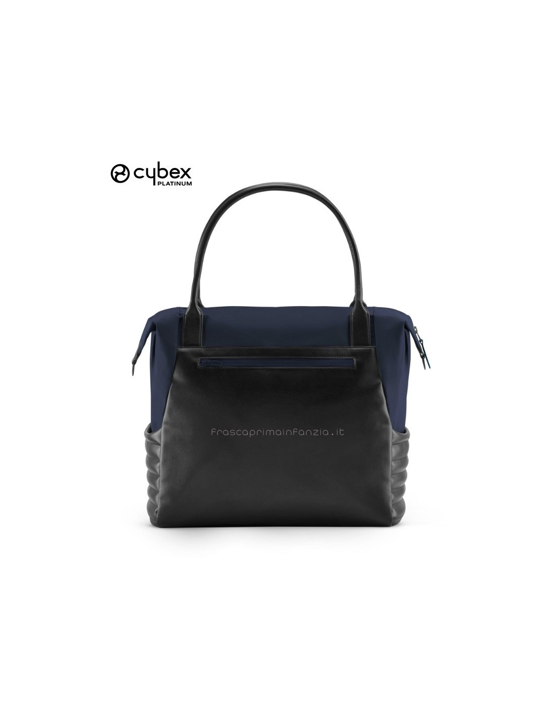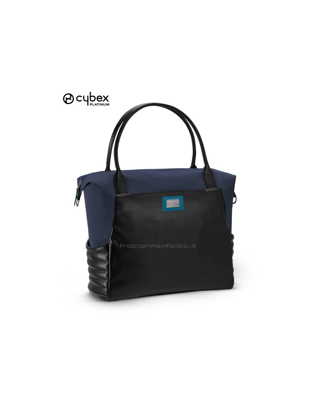 La borsa Shopper CYBEX Platinum è dotata di un porta bevande termico rimovibile, un tappetino per il cambio e uno scomparto per indumenti bagnati.