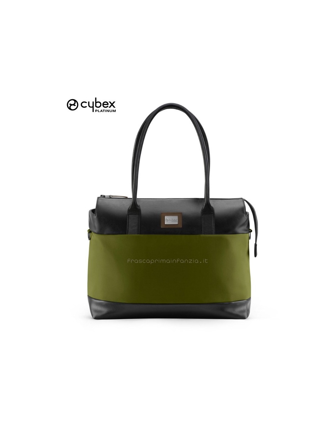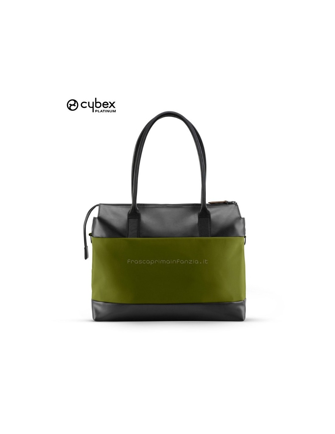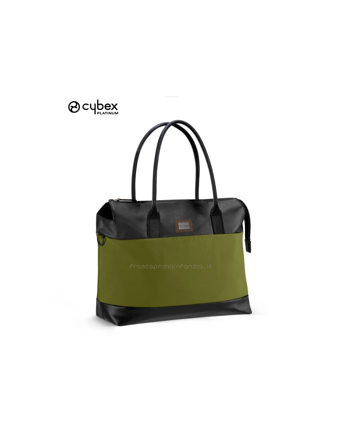 La borsa Tote CYBEX Platinum è dotata di un porta bevande termico rimovibile, un tappetino per il cambio e uno scomparto per indumenti bagnati.