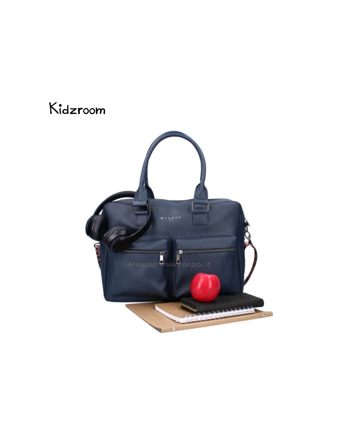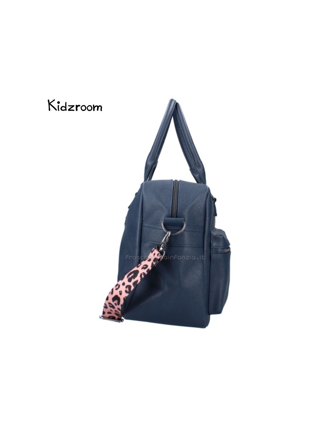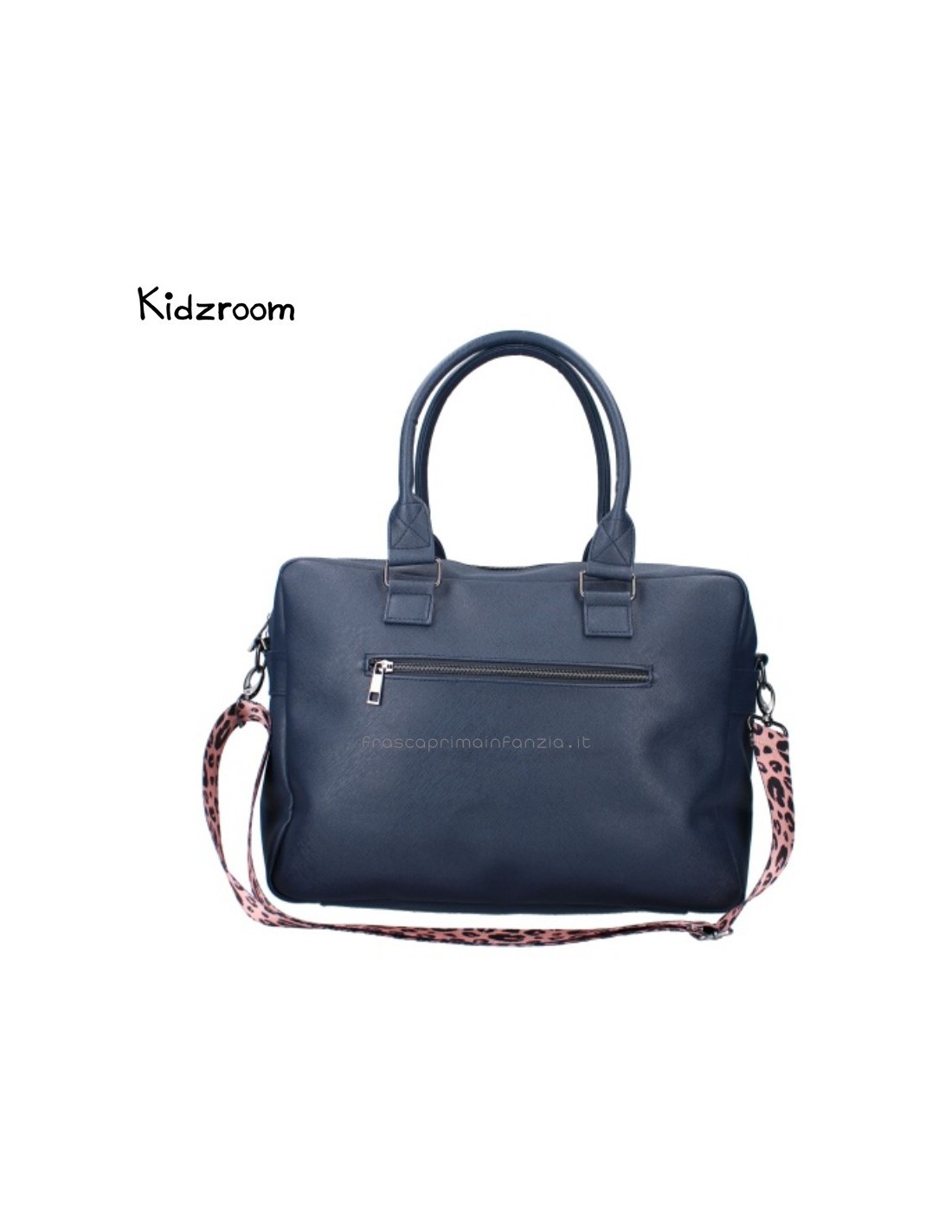 Con questa borsa fasciatoio di tendenza di Kidzroom, potrete portare facilmente gli effetti personali del vostro piccolo ovunque andiate. Questa borsa per pannolini blu scuro con pois neri contiene tutti i pannolini, i panni idrofili, i vestiti extra, i biberon, gli snack e i ciucci necessari per il vostro bambino in viaggio. Le due ampie tasche anteriori consentono di afferrare facilmente gli oggetti necessari. Inoltre, l'ampio scomparto principale è dotato di una doppia cerniera per un facile accesso. Nello scomparto principale si trovano anche diverse tasche con elastico in cui è possibile inserire facilmente una tazza per bere. Sul retro della borsa per pannolini c'è una cerniera per i piccoli oggetti che non si vogliono perdere.