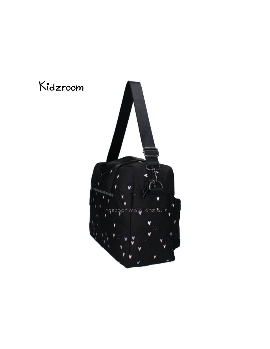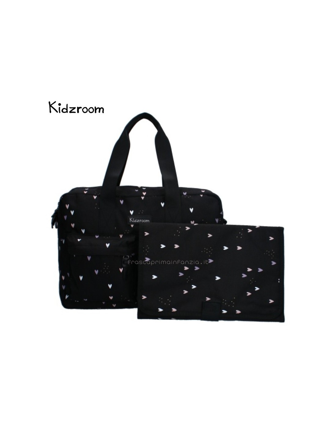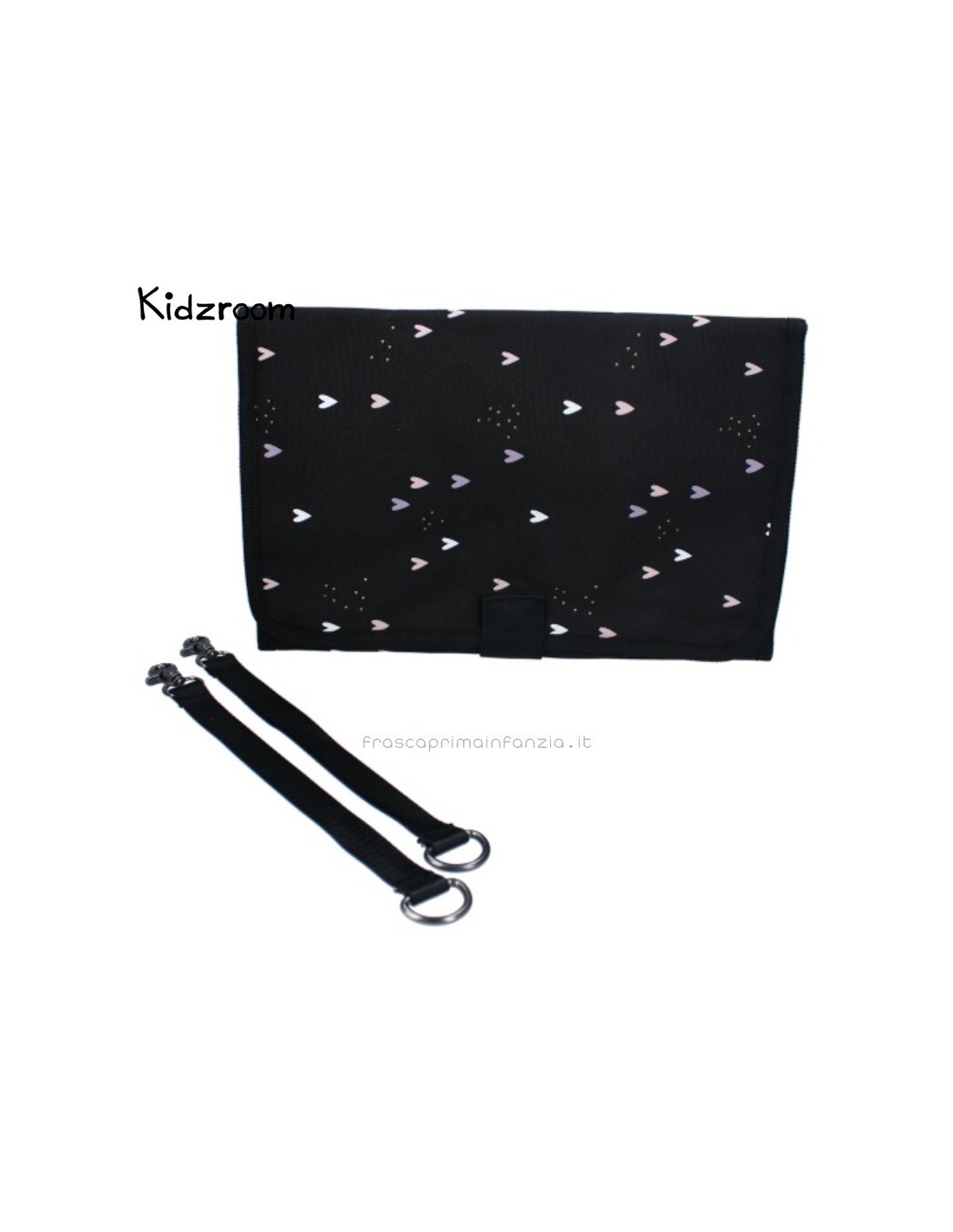 La borsa fasciatoio è dotata di un fasciatoio coordinato per cambiare il bambino ovunque e in qualsiasi momento. La borsa per pannolini può essere trasportata con le maniglie sulla parte superiore o a spalla grazie alla tracolla regolabile e staccabile. La borsa per pannolini è inoltre dotata di passanti per essere facilmente appesa alla carrozzina.