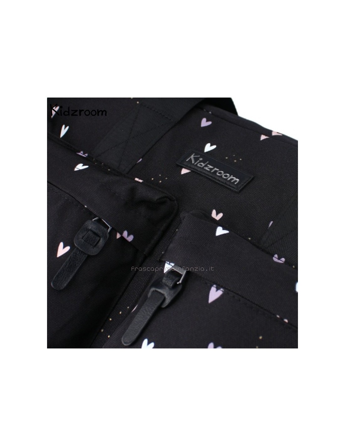 Uscire con un bambino? Allora dovete portare molto con voi. Un genitore non può fare a meno di una buona borsa fasciatoio. Questa borsa per pannolini beige a pois di Kidzroom contiene tutti i pannolini, i panni idrofili, i vestiti extra, i biberon, gli snack e i ciucci necessari per il vostro bambino in viaggio. La borsa è dotata di due spaziose tasche anteriori per gli oggetti da afferrare rapidamente. Inoltre, l'ampio scomparto principale è dotato di una doppia cerniera per un facile accesso. L'ampio scomparto è dotato di una cerniera per i piccoli oggetti e di diverse tasche con elastico per riporre facilmente le tazze. Sul retro della borsa per pannolini si trova un'altra cerniera per un ulteriore spazio di archiviazione.
