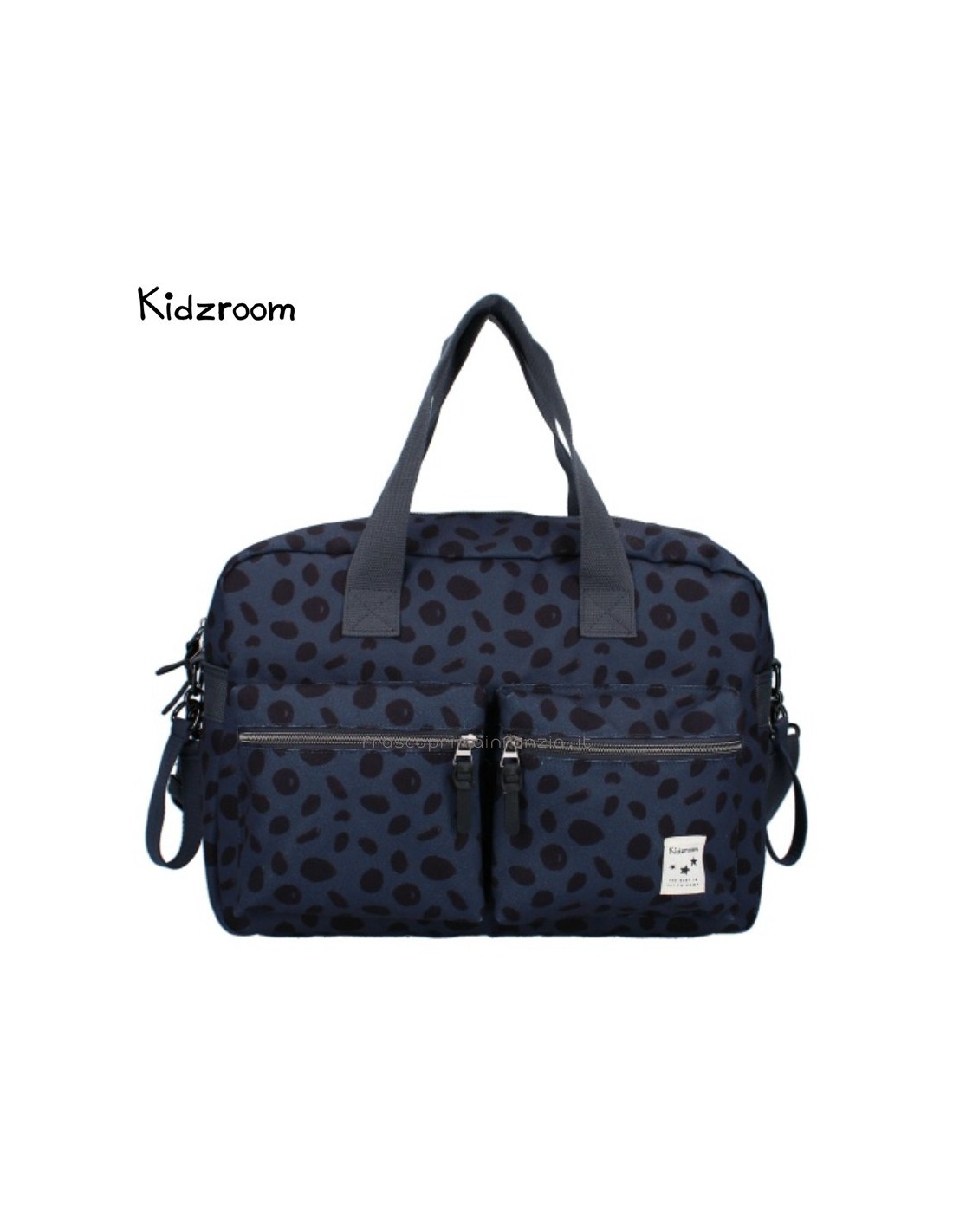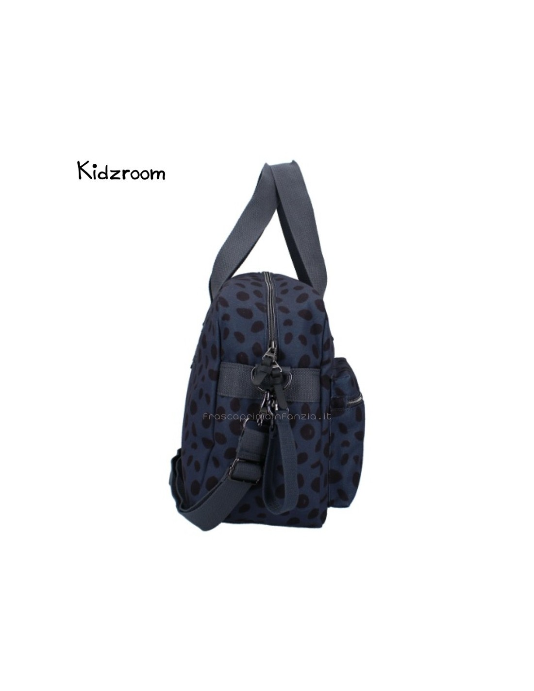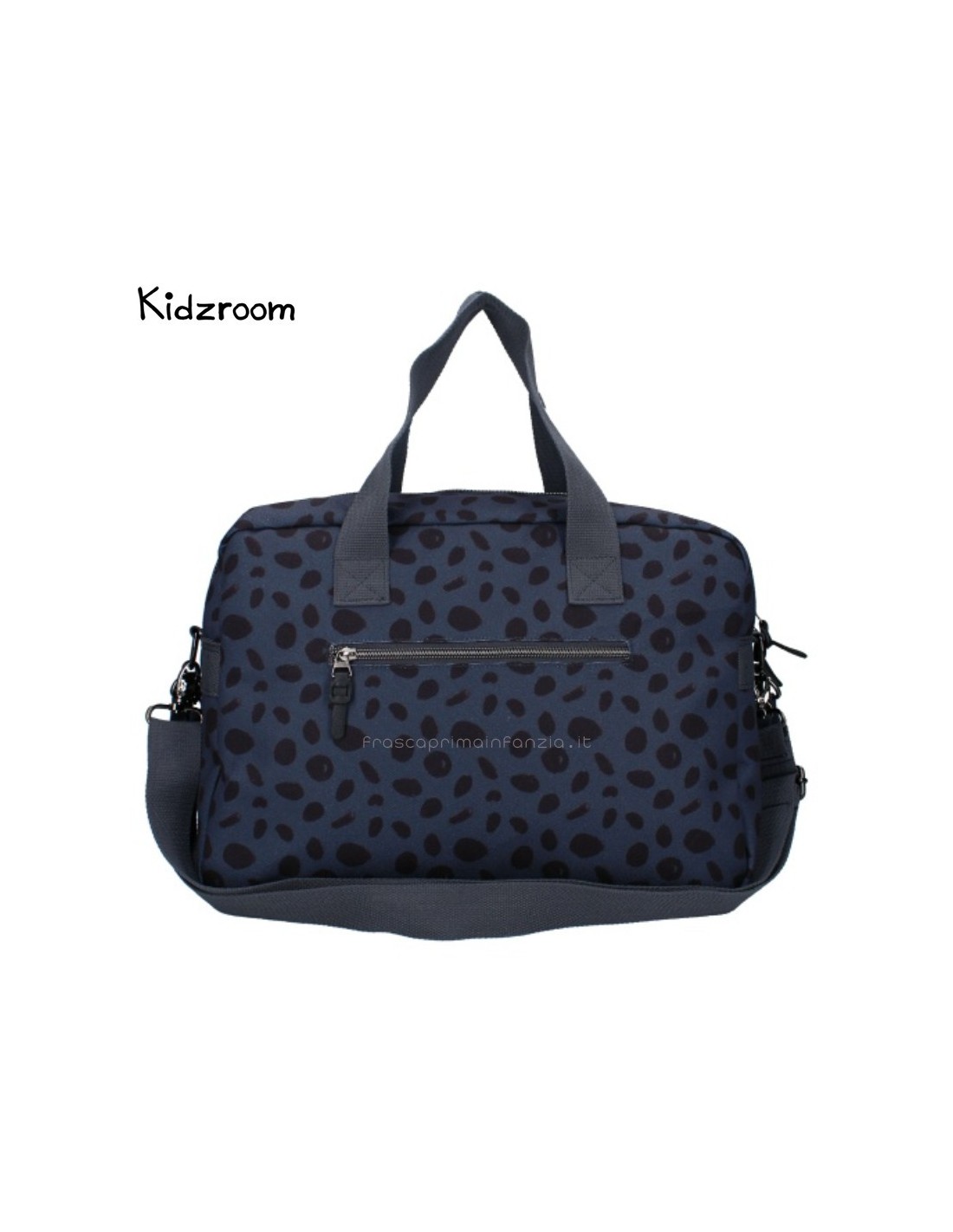 Con questa borsa fasciatoio di tendenza di Kidzroom, potrete portare facilmente gli effetti personali del vostro piccolo ovunque andiate. Questa borsa per pannolini blu scuro con pois neri contiene tutti i pannolini, i panni idrofili, i vestiti extra, i biberon, gli snack e i ciucci necessari per il vostro bambino in viaggio. Le due ampie tasche anteriori consentono di afferrare facilmente gli oggetti necessari. Inoltre, l'ampio scomparto principale è dotato di una doppia cerniera per un facile accesso. Nello scomparto principale si trovano una cerniera e diverse tasche con elastico in cui è possibile riporre facilmente una tazza. Sul retro della borsa per pannolini c'è una cerniera per i piccoli oggetti che non si vogliono perdere.