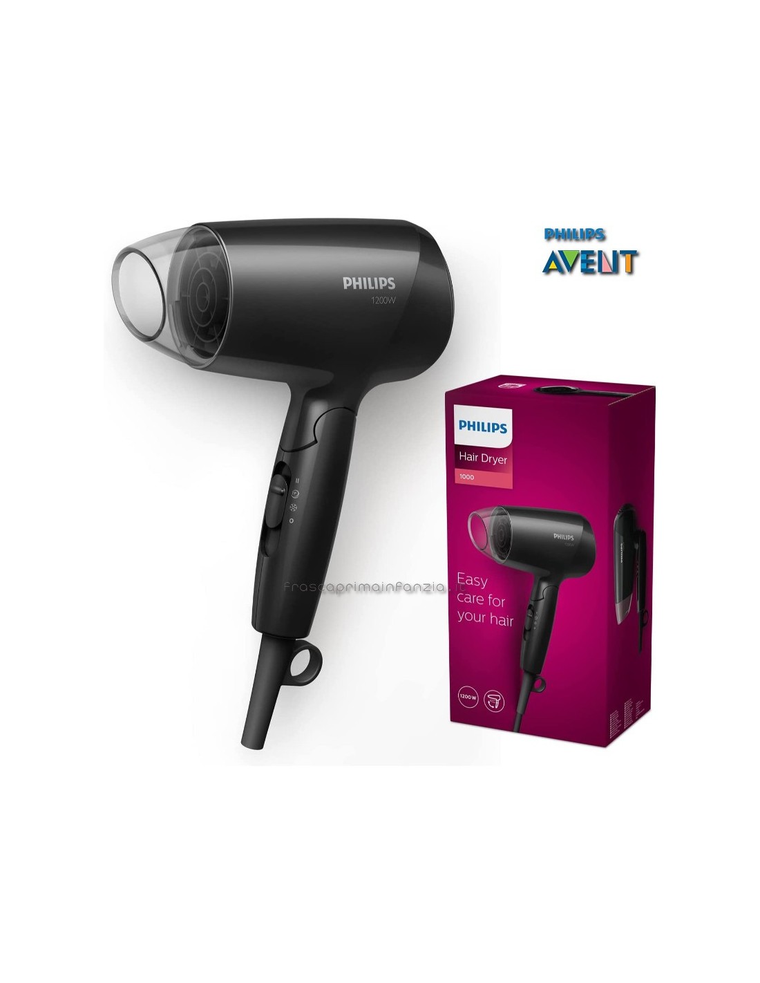 Il nuovo asciugacapelli Philips Essential Care ha un design curato, è compatto e potente. La potenza di 1200 W permette di asciugare i capelli in modo veloce e delicato. Le diverse impostazioni di velocità consentono di adeguare la potenza alle diverse esigenze e di salvaguardare i capelli.