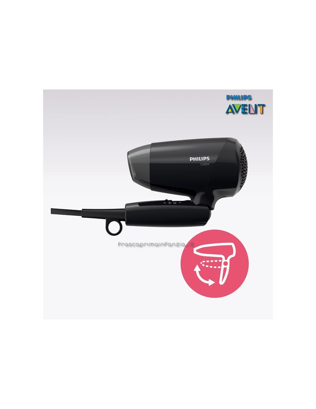 Questo asciugacapelli dispone di un'impugnatura pieghevole che lo rende piccolo e compatto, facilmente riponibile anche in spazi ristretti.