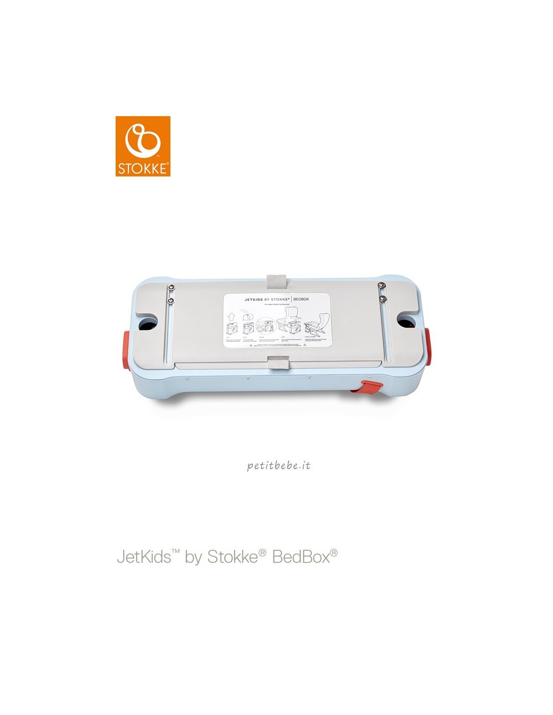 Stokke Bedbox è una valigia per bambini di alta qualità, l'unica al mondo ad essere cavalcabile e utilizzabile in volo come lettino e poggiapiedi.