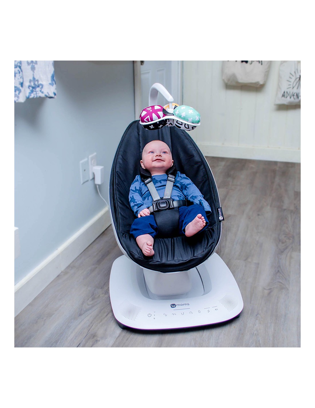 - Giocattoli mobili Limite di età e di peso: Il MamaRoo® Multi-Motion Baby Swing™ è concepito per l'uso fino a quando il tuo piccolo non raggiunge un massimo di 9 kg (circa 6 mesi). Utilizzare sempre il sistema di ritenuta. Regolarlo in modo che si adatti perfettamente. Il sistema di ritenuta può essere configurato con l'imbracatura a 3 punti o l'imbracatura a 5 punti. Se si utilizza l'imbracatura a 3 punti, è necessario passare all'uso dell'imbracatura a 5 punti quando il bambino può stare seduto da solo.