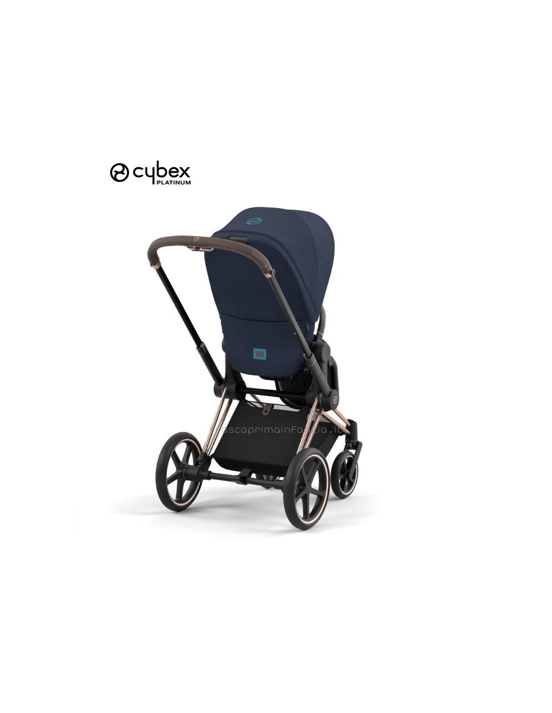 CYBEX Priam presenta un cestino per la spesa spazioso e facilmente accessibile che può essere aperto all’occorrenza.