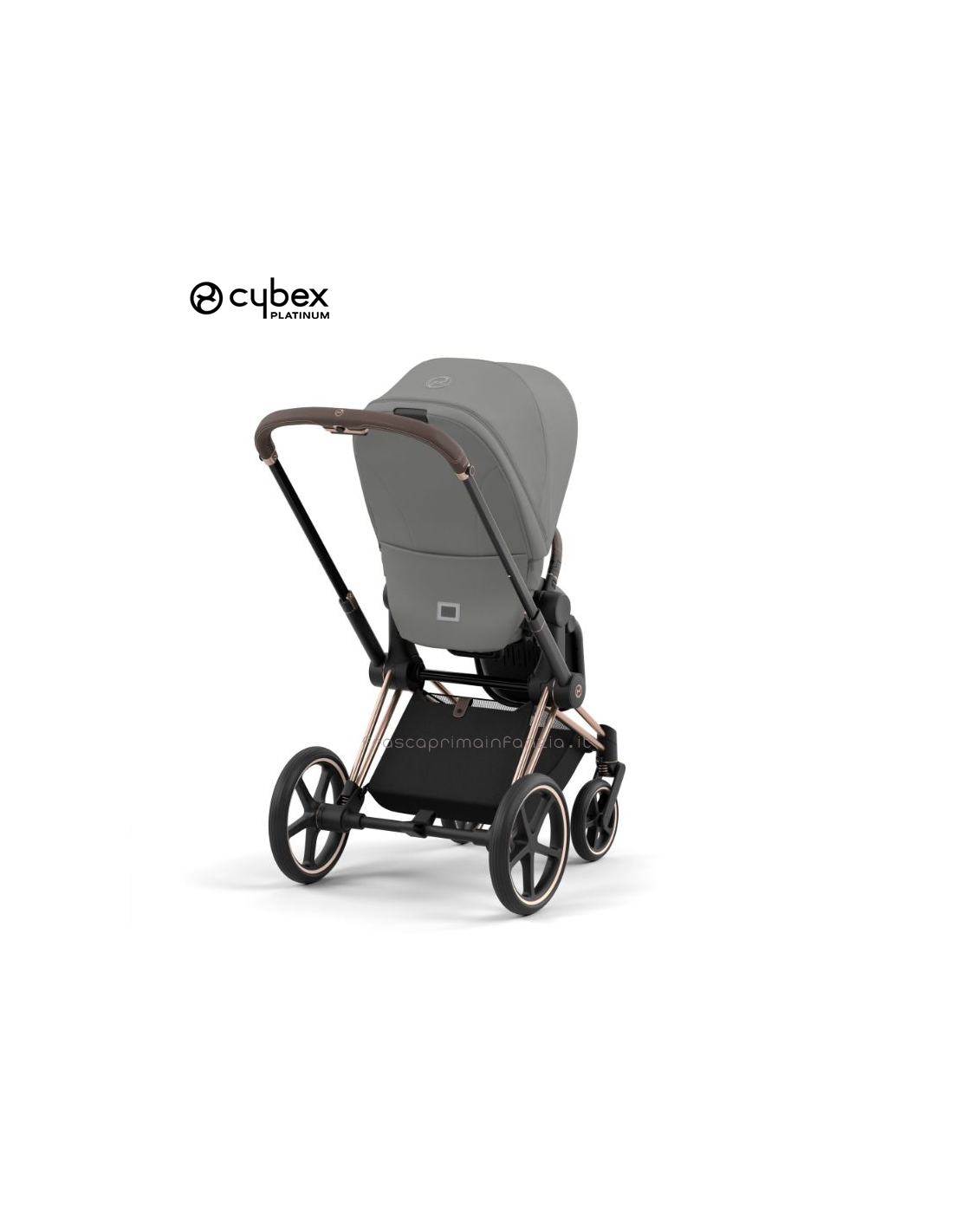 CYBEX Priam presenta un cestino per la spesa spazioso e facilmente accessibile che può essere aperto all’occorrenza.