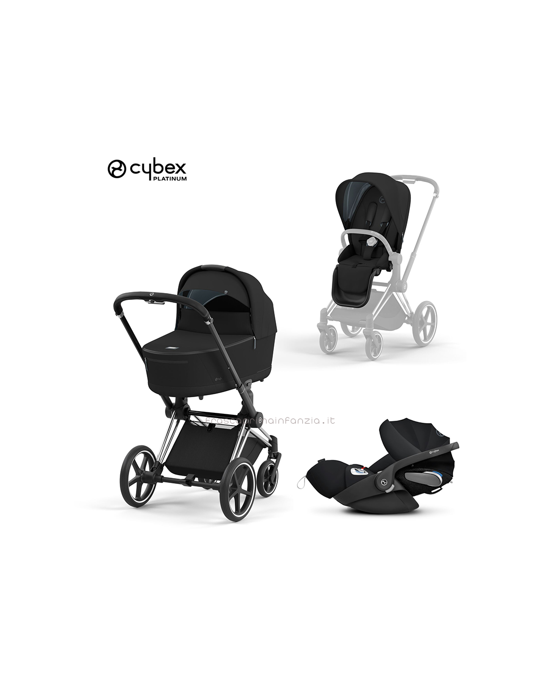 Un telaio, quattro opzioni di viaggio. Il telaio Priam è compatibile con l’unità di seduta del passeggino, il seggiolino per auto e la navicella Lux Carry Cot. In alternativa, puoi aggiungere una navicella Lite Cot alla seduta del passeggino per trasportare il tuo bambino in posizione completamente reclinata.