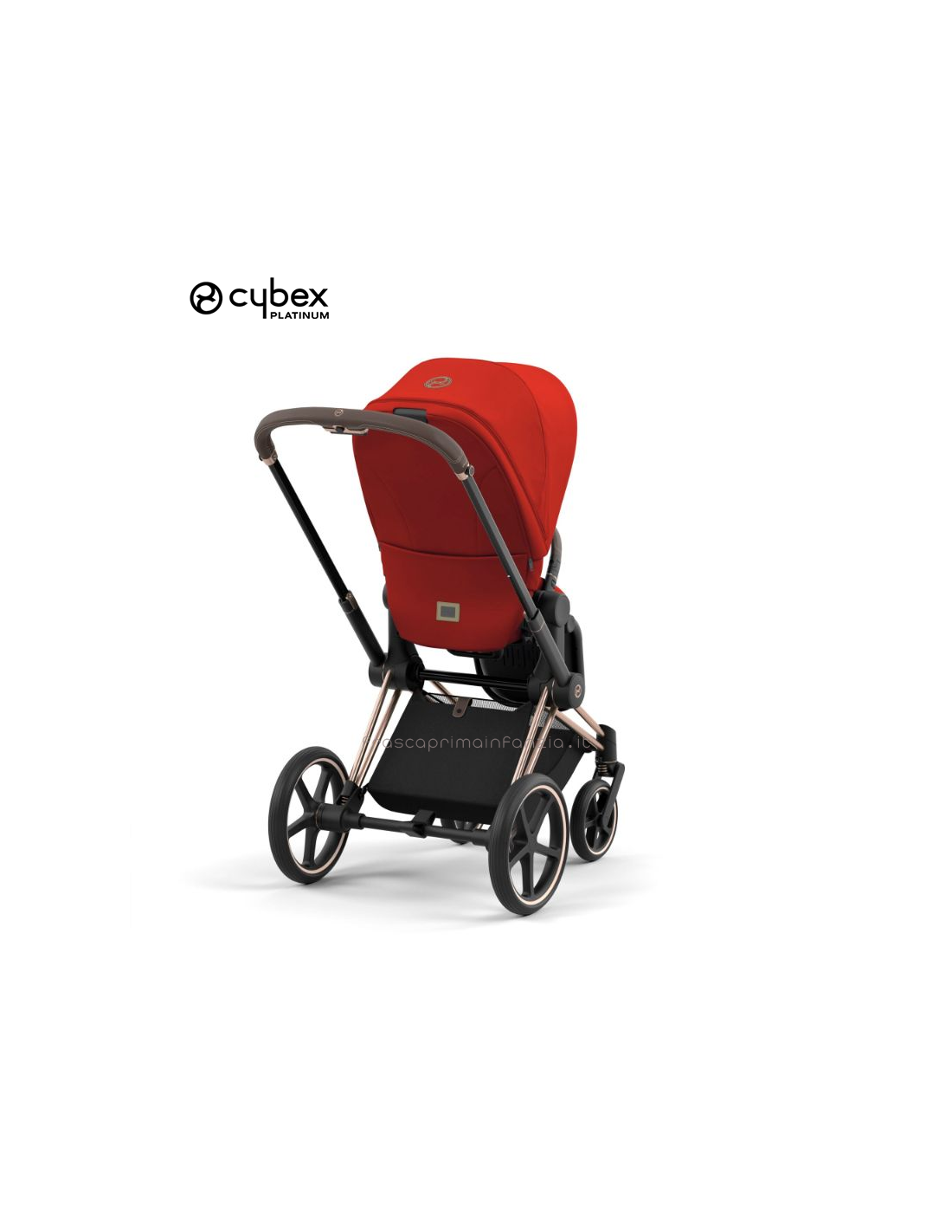 CYBEX Priam presenta un cestino per la spesa spazioso e facilmente accessibile che può essere aperto all’occorrenza.