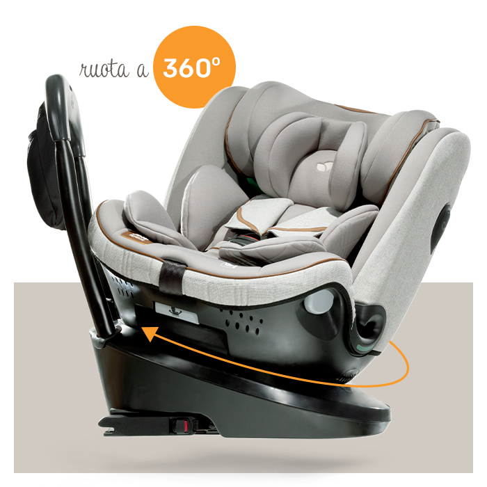 •  Rotazione del seggiolino a 360° che semplifica le operazioni di chiusura e apertura delle cinture di sicurezza