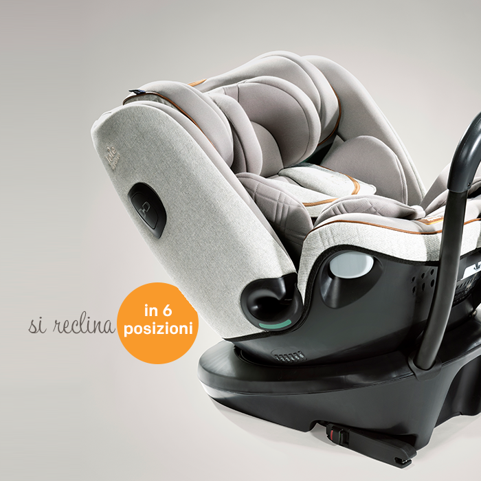 Reclinabile in sei posizioni quando si rende necessario, sia quando viene installato in senso di marcia che nel senso contrario.