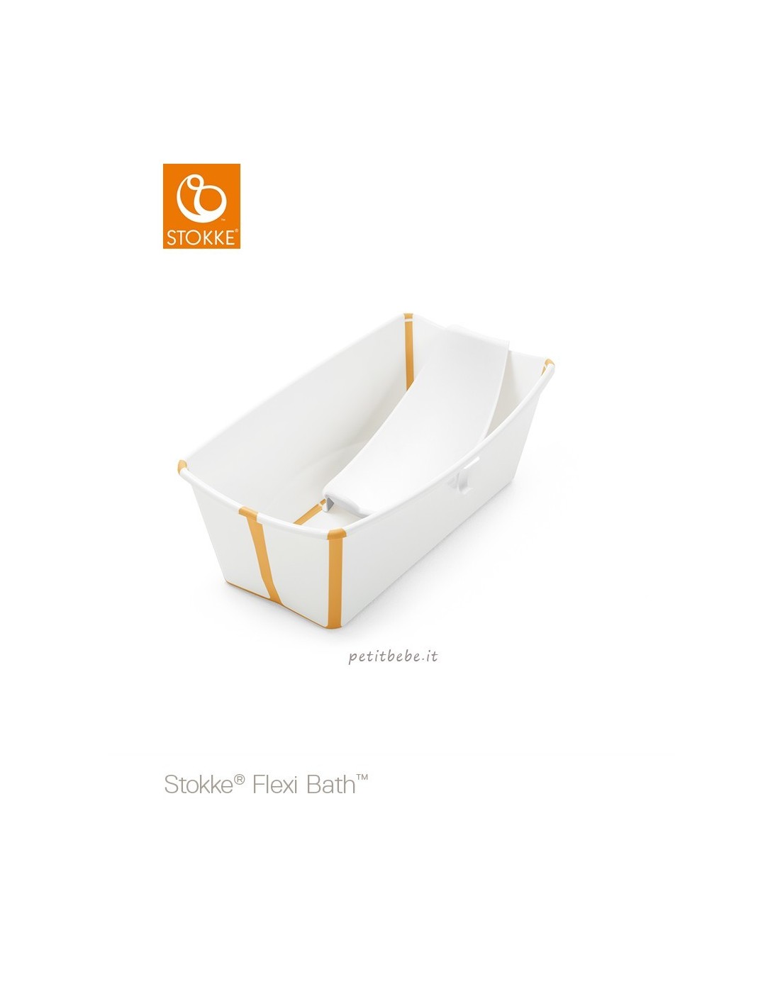 Stokke Flexi Bath + Newborn è il kit che comprende la prima vaschetta pieghevole, che chiusa diventa piatta e compatta e il Supporto Neonati(Newborn) che può essere