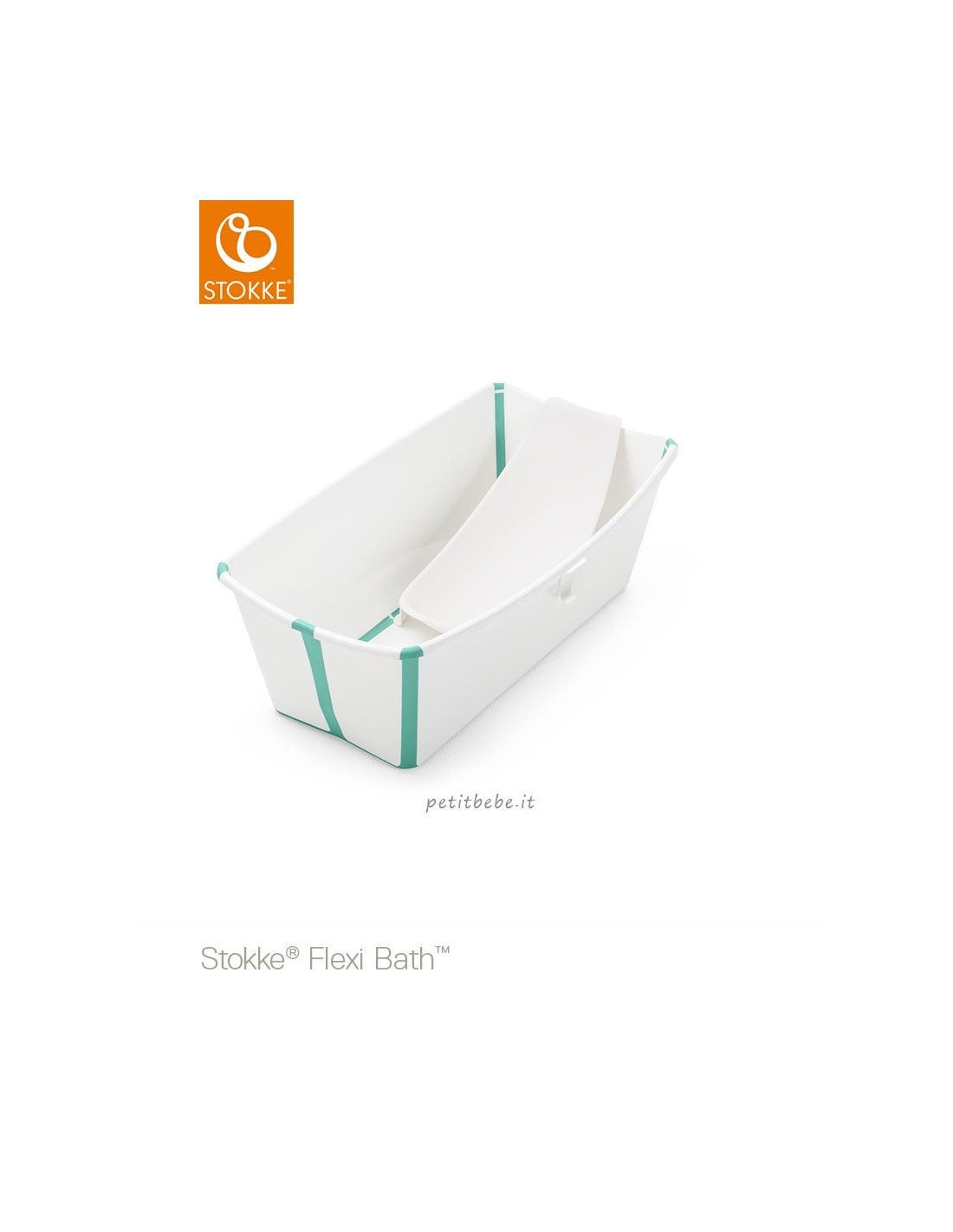 Stokke Flexi Bath + Newborn è il kit che comprende la prima vaschetta pieghevole, che chiusa diventa piatta e compatta e il Supporto Neonati(Newborn) che può essere
